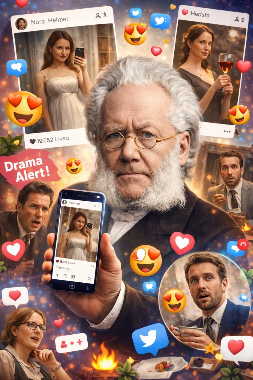 Er det som går viralt i dag egentlig så forskjellig fra det som vakte oppsikt på 1800-tallet – eller er det de samme konfliktene som utspiller seg, bare i nye formater og på nye plattformer? I Fra Ibsen til Instagram undersøker vi nettopp dette: hvordan klassiske temaer som frihet, kjønn, makt og selvpresentasjon lever videre i en digital samtid.